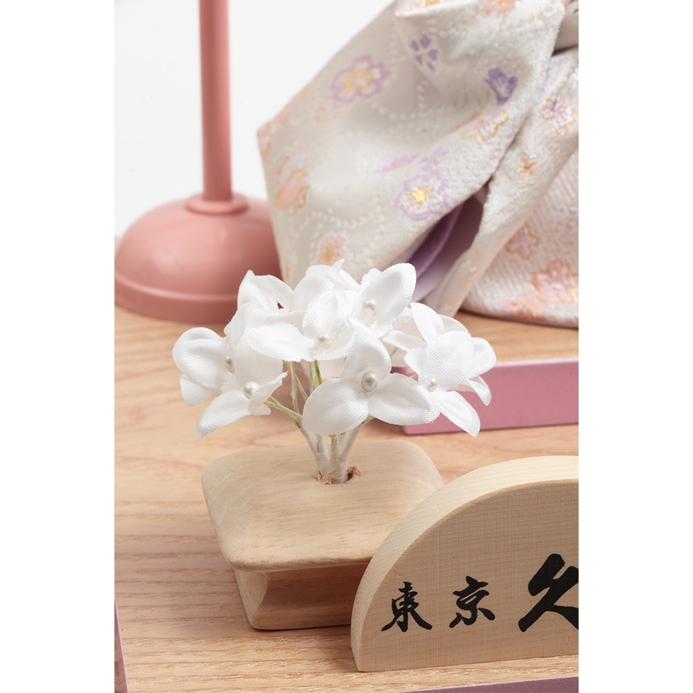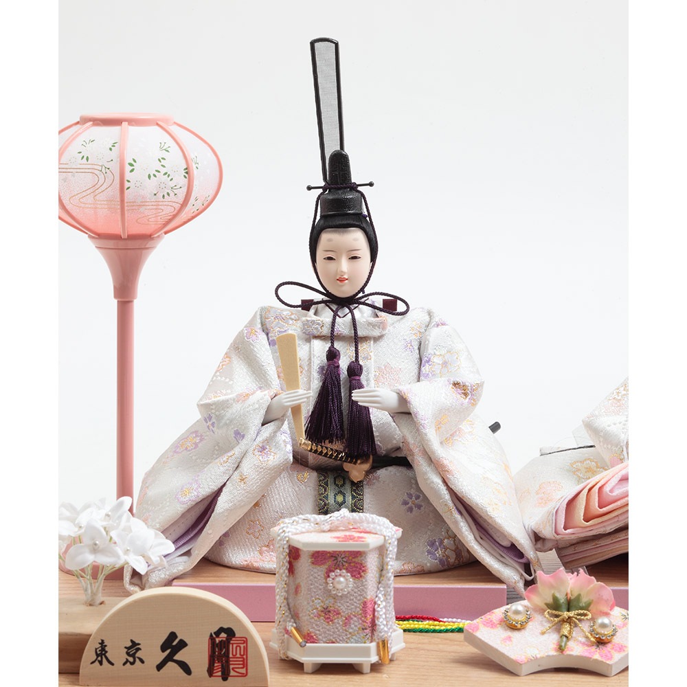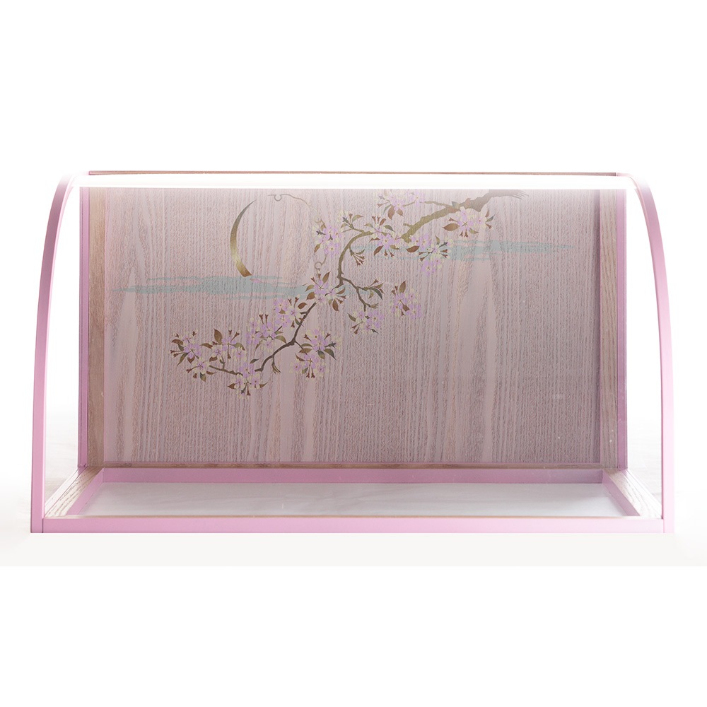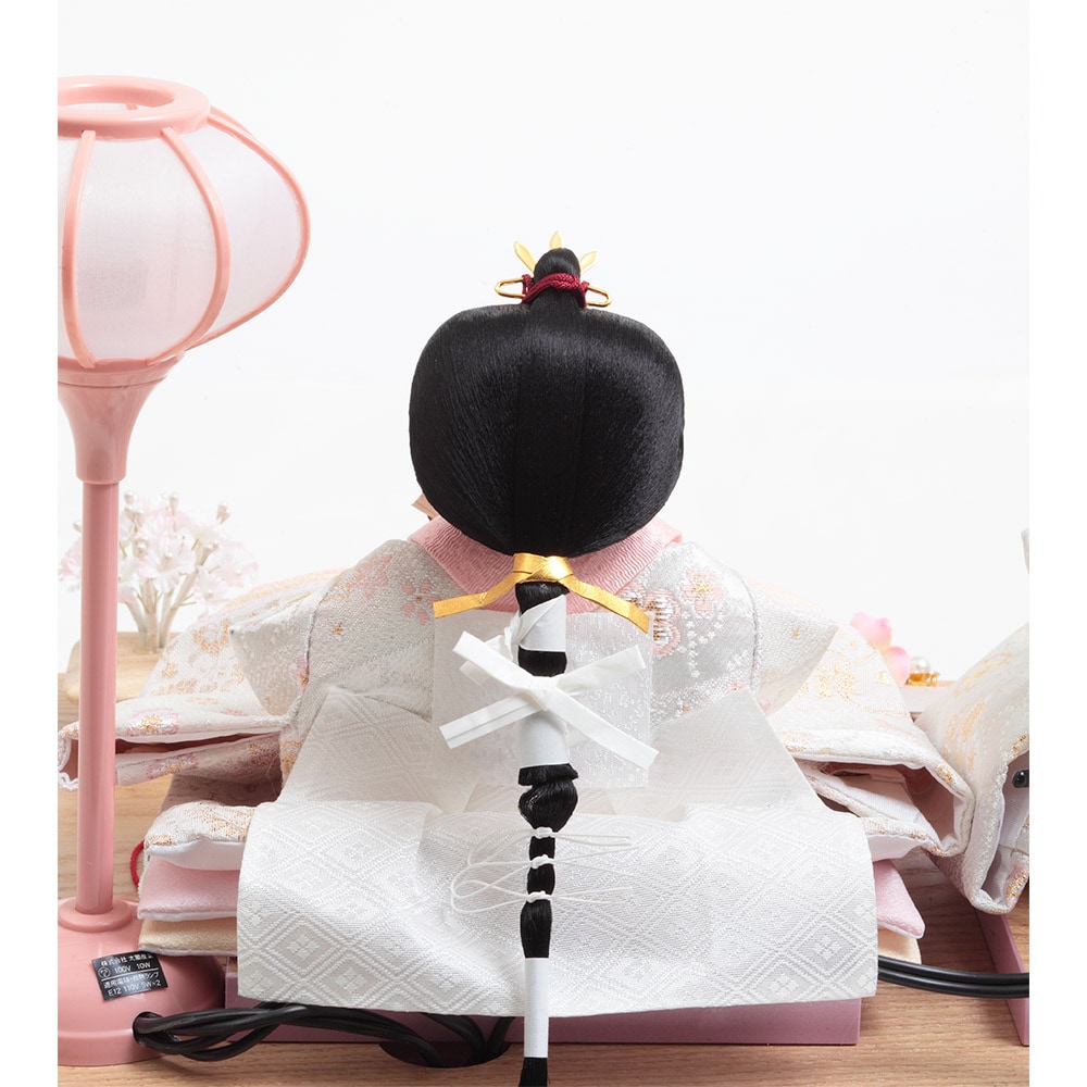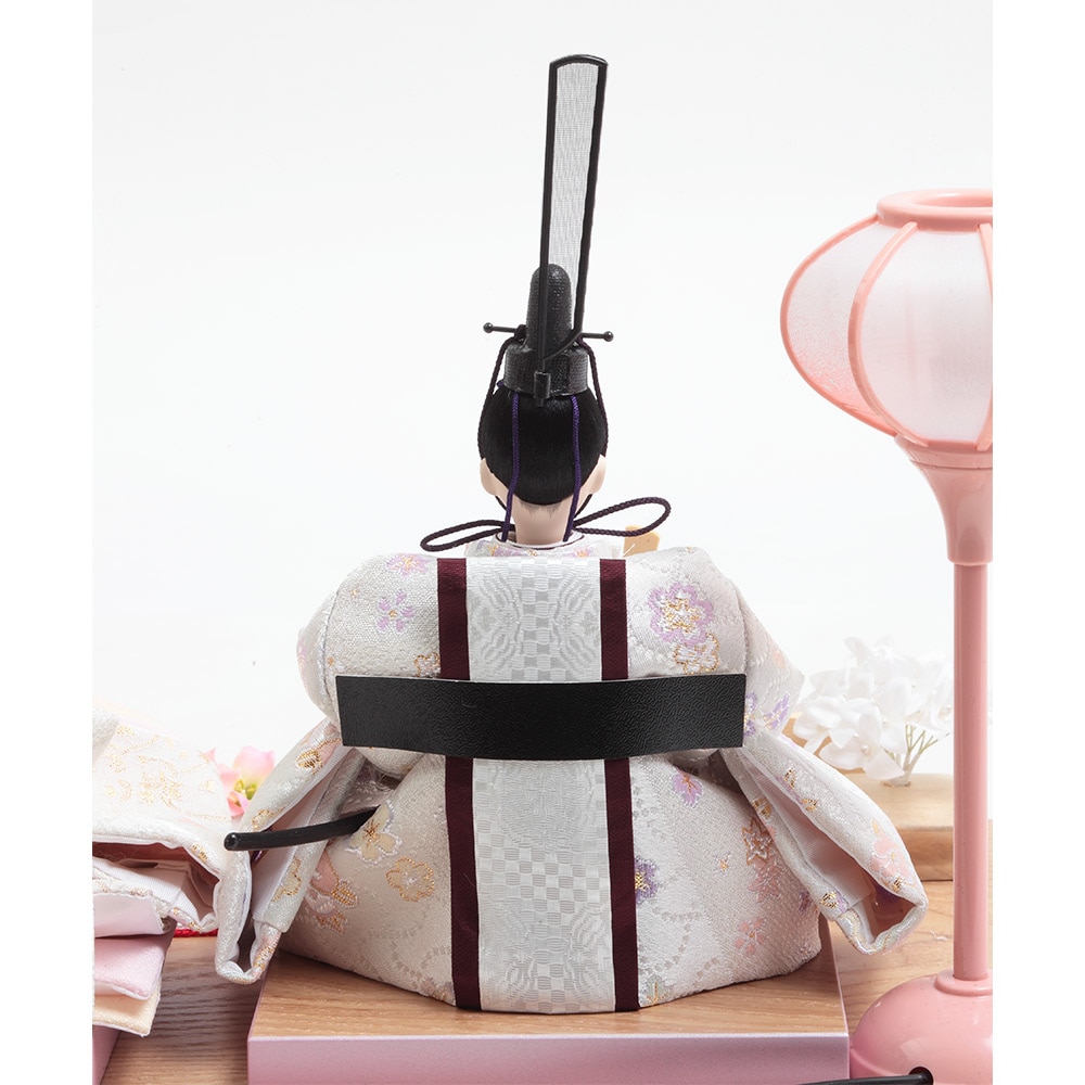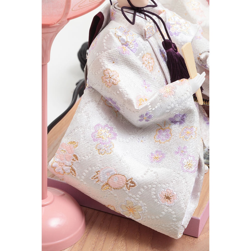 優美な雪輪文様に美しい枝桜を合わせて描いた、風情のあるケース背景も、優し気に佇むお人形を一層引き立てます。