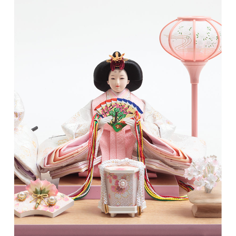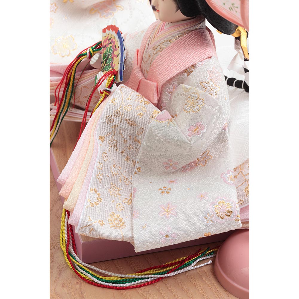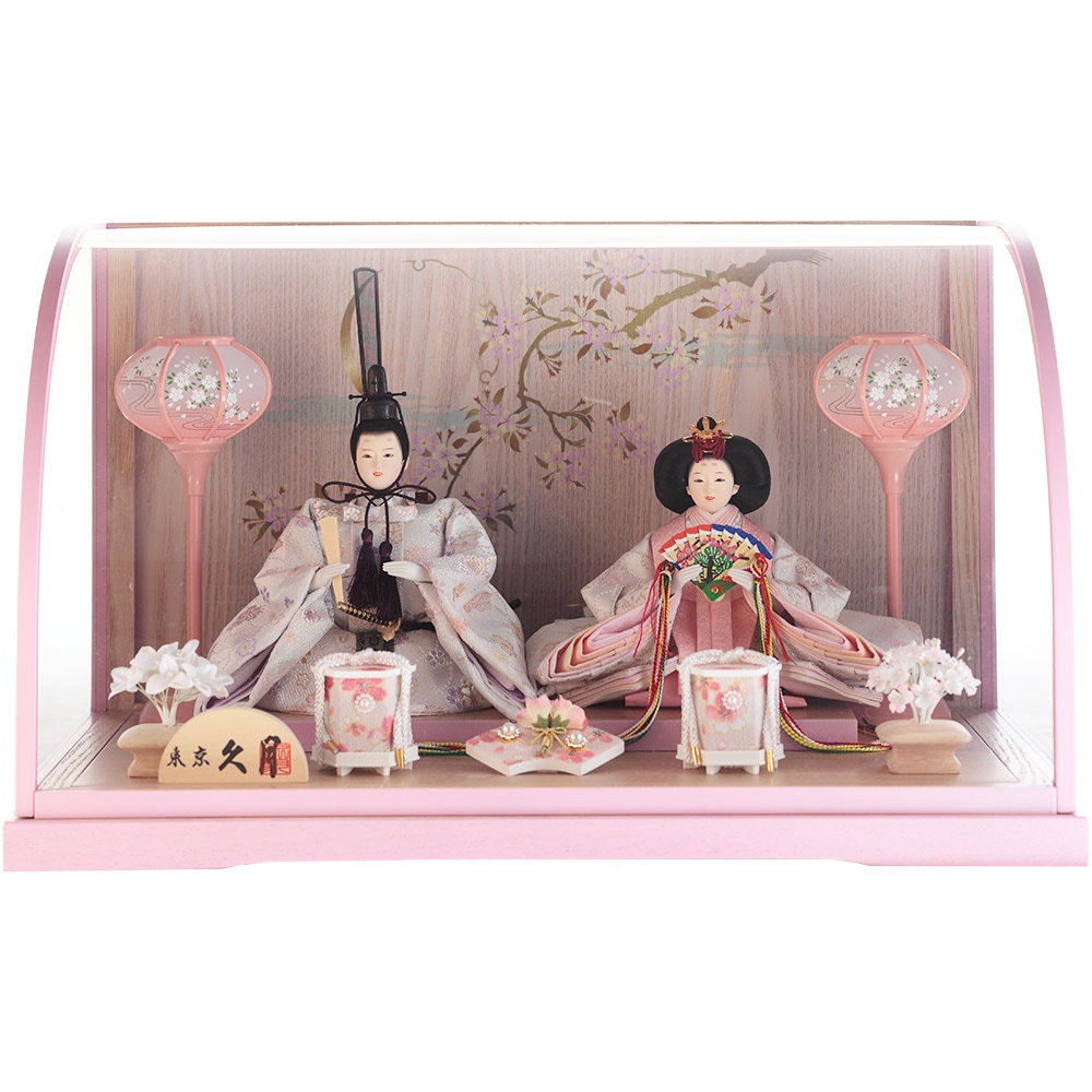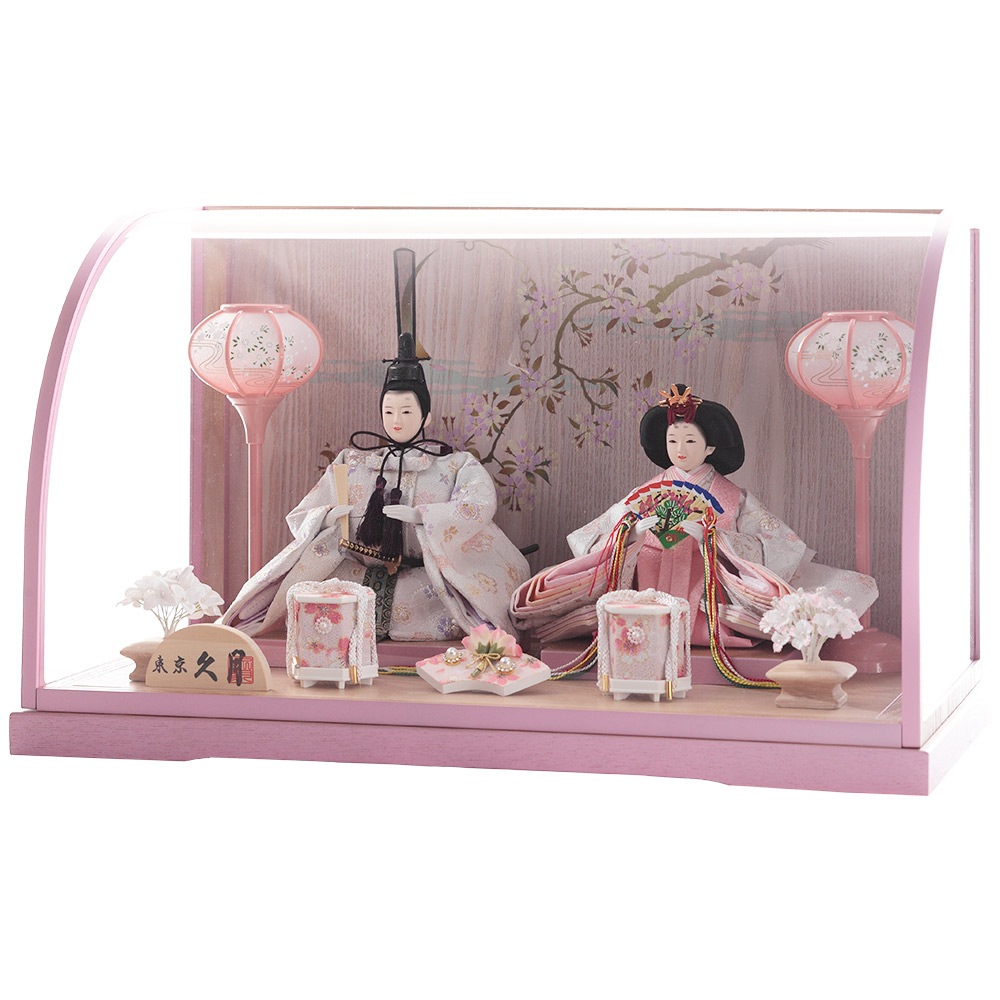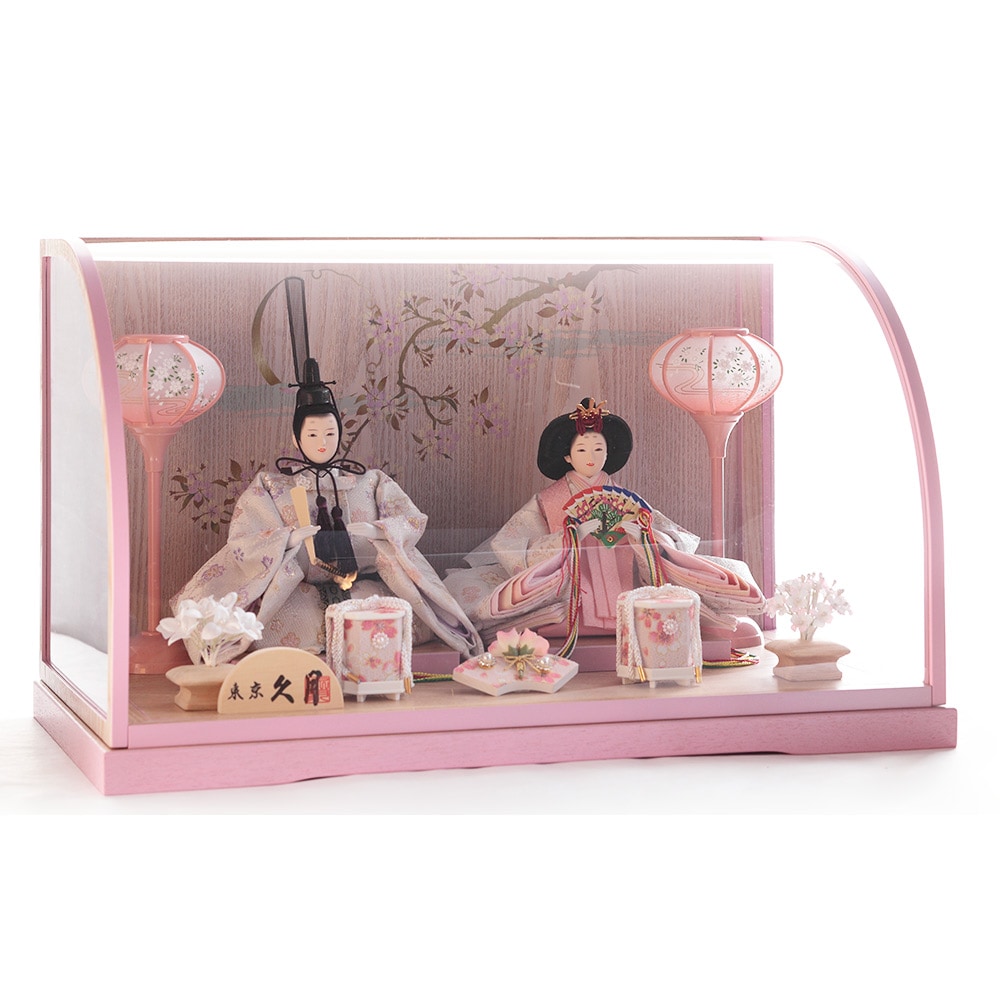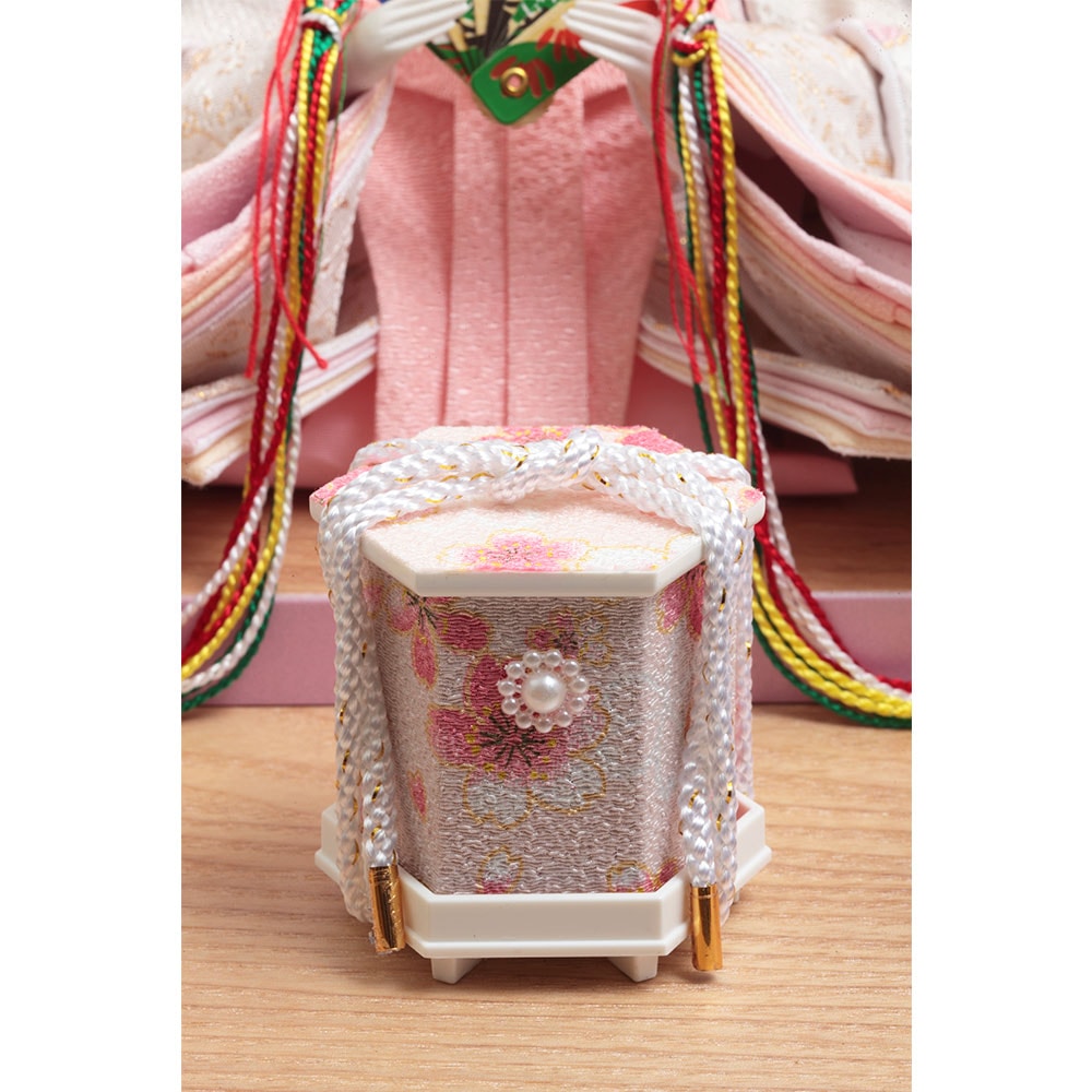ピンク色の可愛らしいケースが、女の子の晴れの日のお祝いに明るく華やかな彩りを添える、飽きの来ない和モダンなスタイルに魅せられるケース入りの親王飾りです。