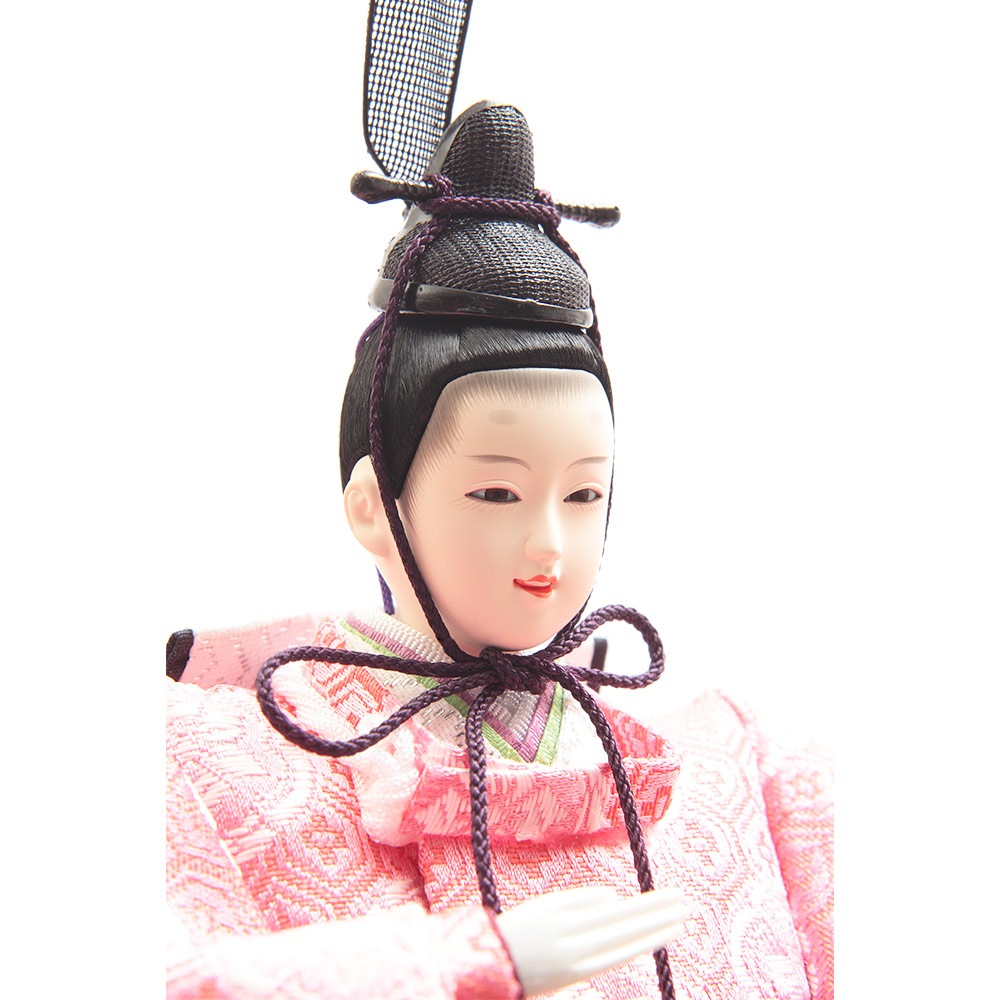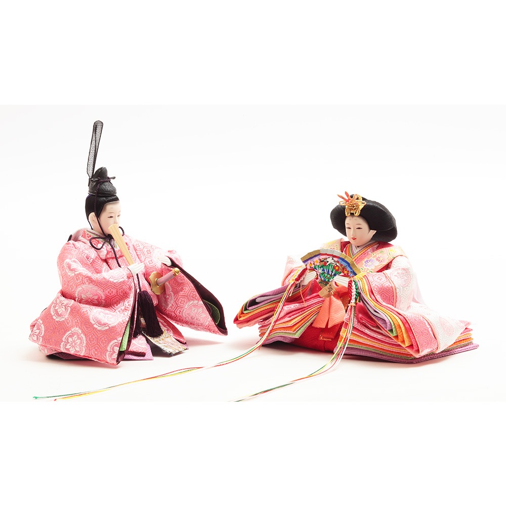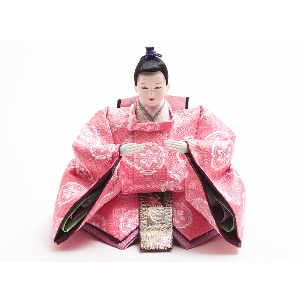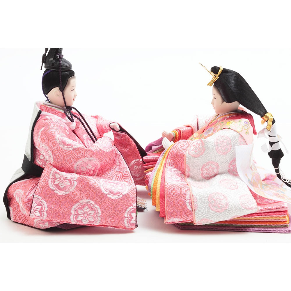 女の子の晴れの日のお祝いに相応しい、明るく優し気な色合いで全体をコーディネートした、うららかな春の訪れを感じさせるおひなさまです。