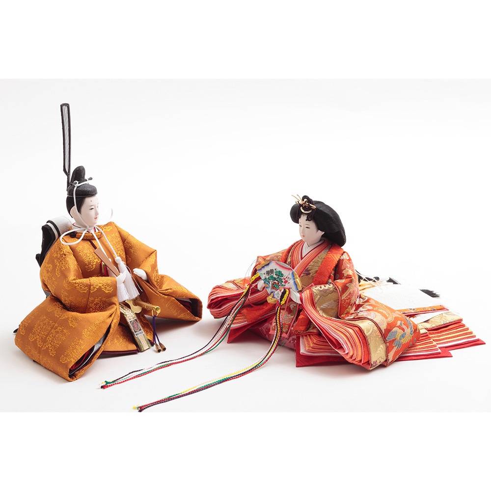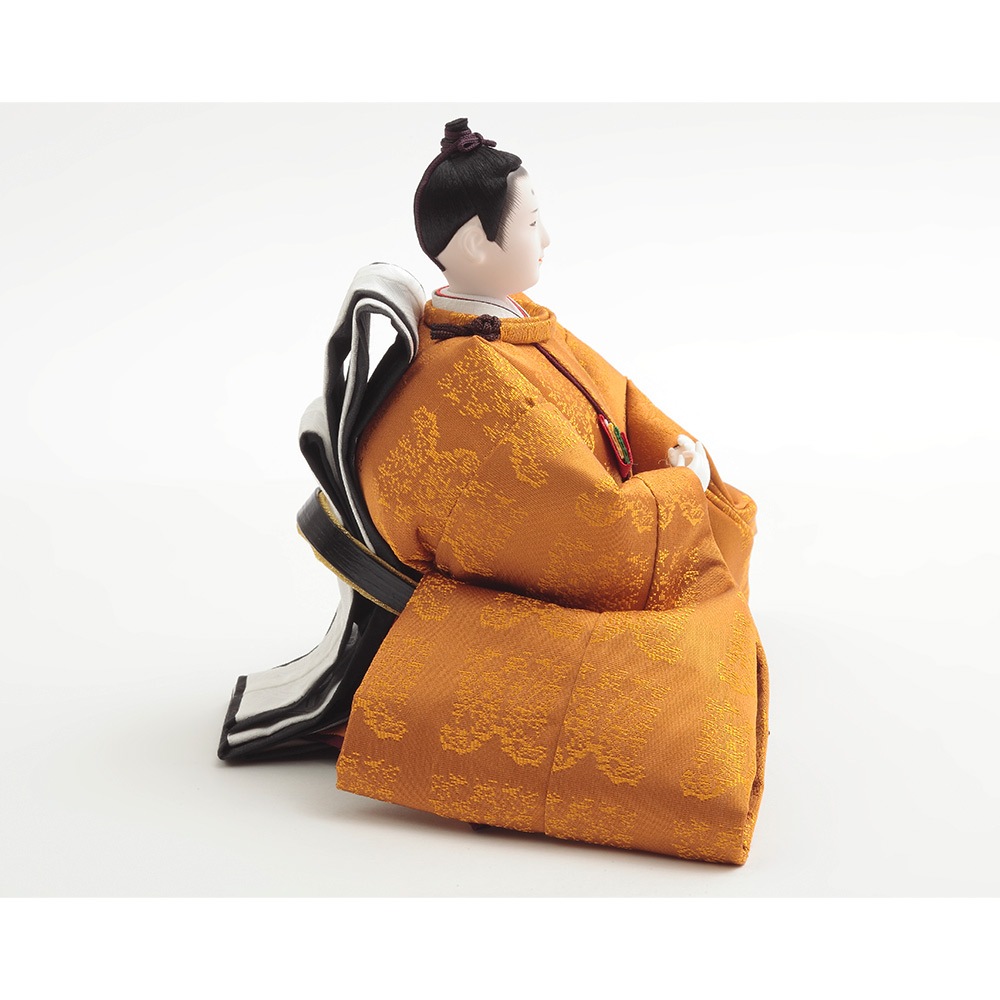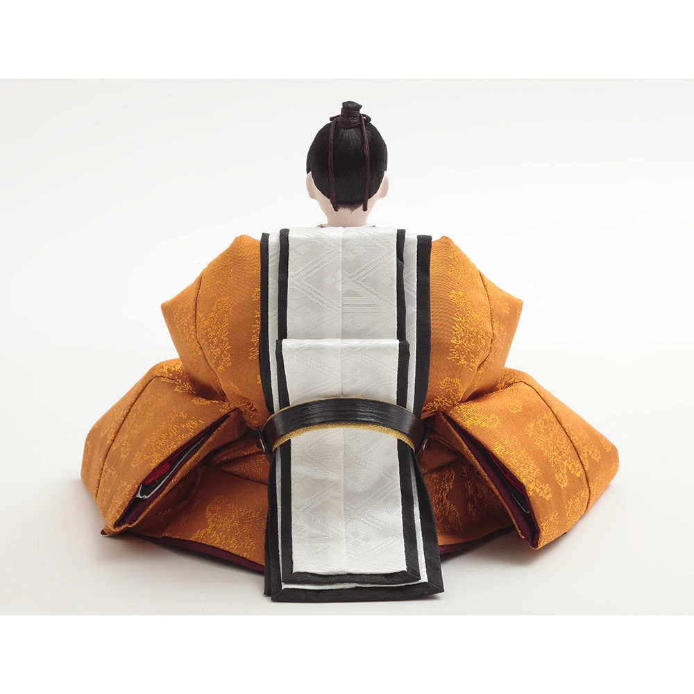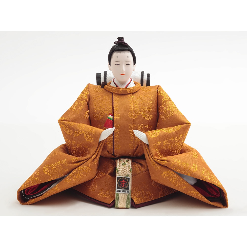 平安装束の中でも格式の高さで知られる黄櫨染御袍(こうろせんのごほう)を再現した男雛と、明るく華やかな色合いが素敵な女雛が、大切なお子様の晴れの日のお祝いを優雅に彩ります。
