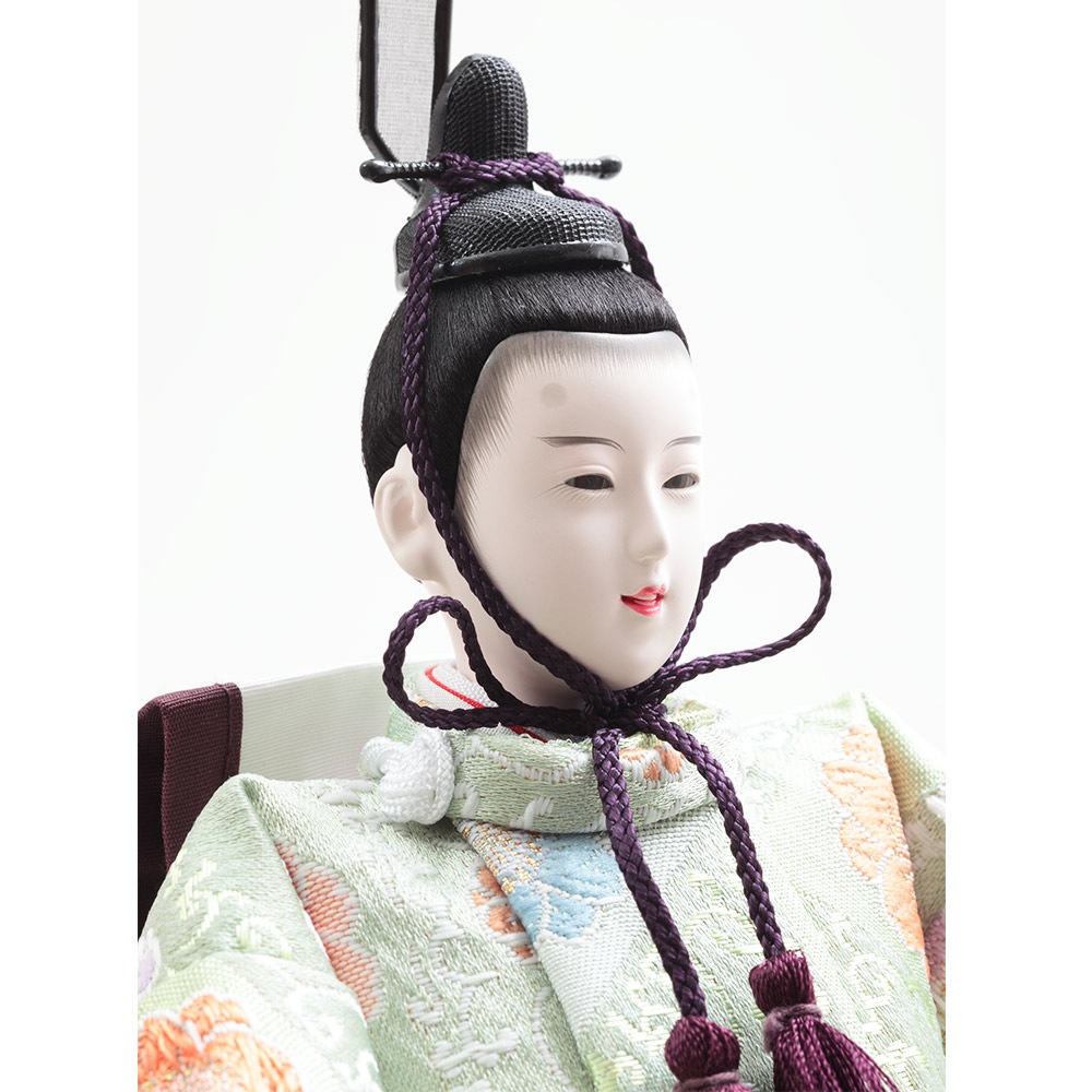 愛らしく微笑むお人形のお顔立ちも、女の子の晴れの日のお祝いに優し気な彩りを添える、飽きの来ない可憐な趣に魅せられるおひなさまです。