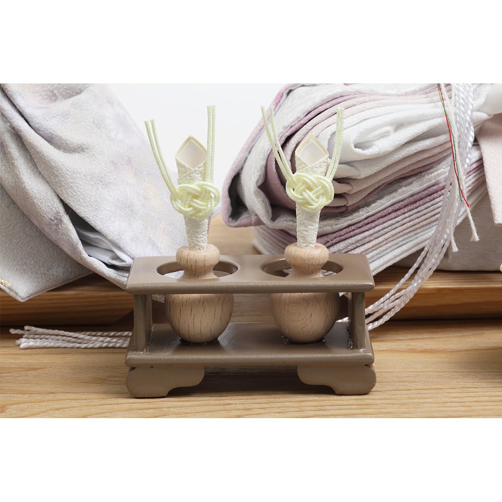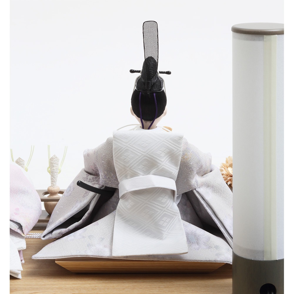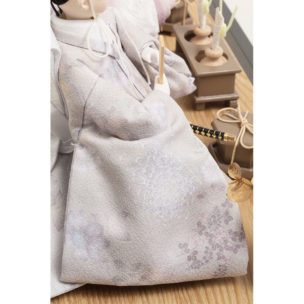 上品な木肌とアッシュグレーのツートンカラーを基調に全体をコーディネートした、現代的な美意識の中にも可愛らしさを感じさせる人気のおひなさまです。