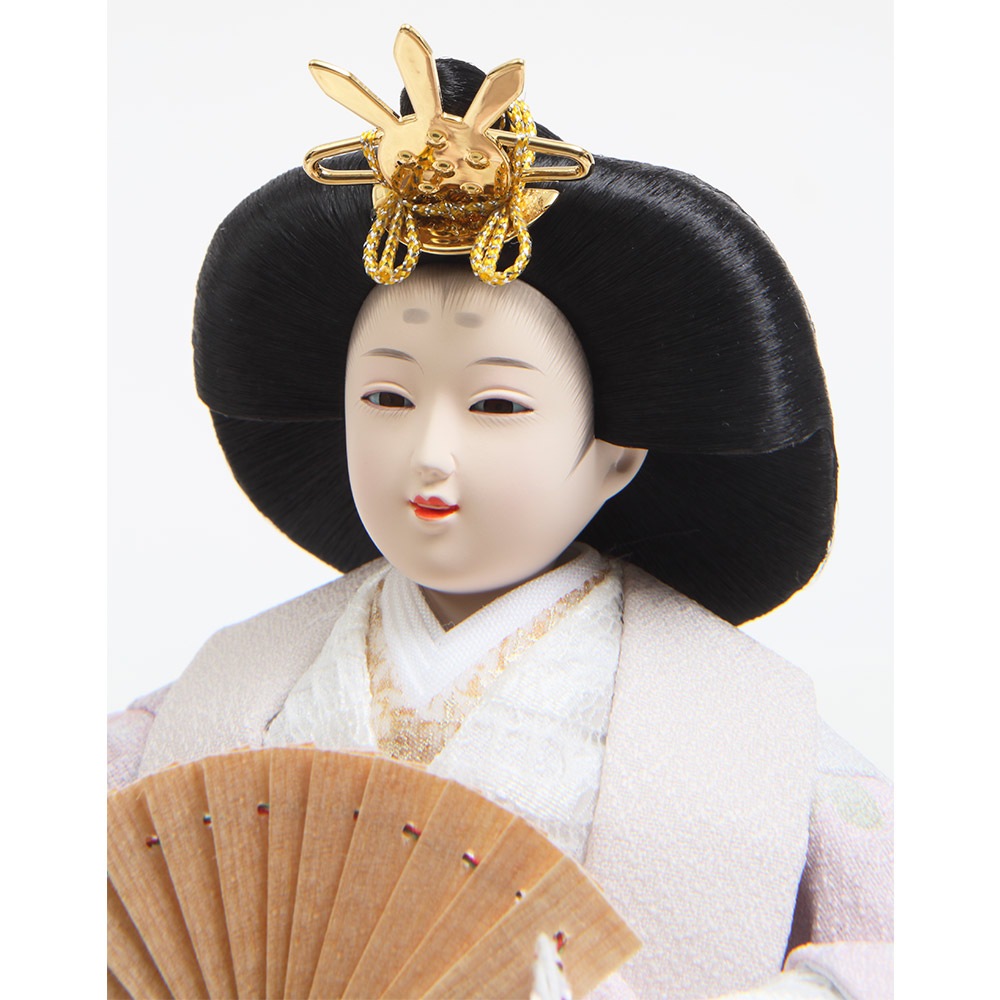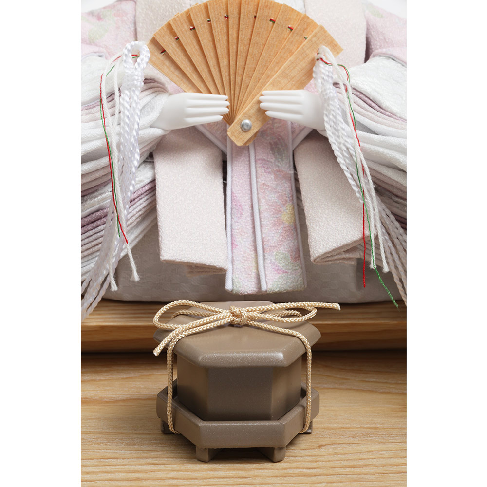 飽きの来ない美麗なデザインが魅力のケースと色合いを合わせた、モダンなテイストのお道具や雪洞も、愛らしく微笑むお人形を一層引き立てます。