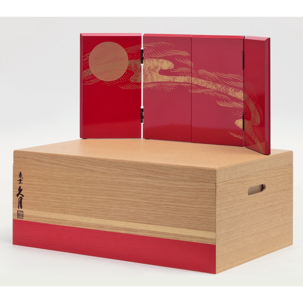 銘木である楢を飾り台に使用した、久月オリジナルの銘木シリーズの親王収納飾りです。