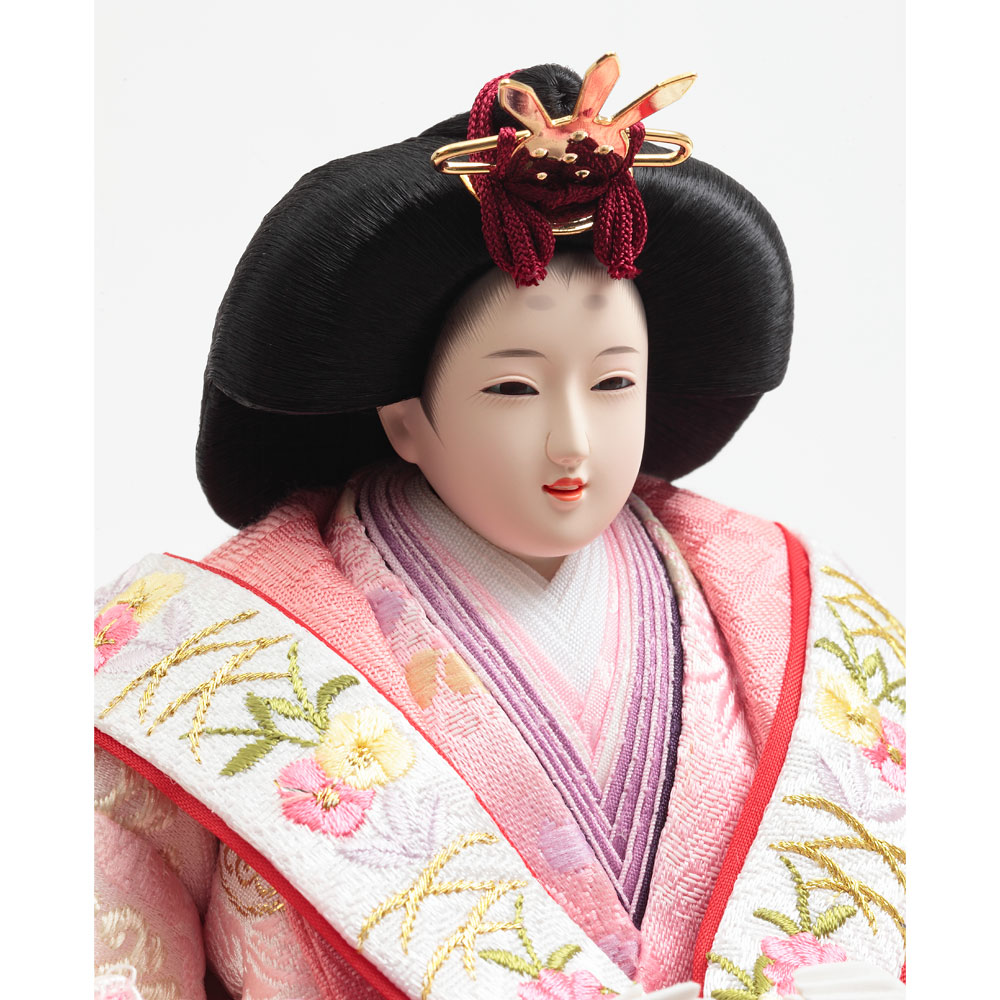 優し気に微笑む可憐な佇まいが魅力のお人形が、風情のある流水桜を描いた上品な屏風に美しく調和します。