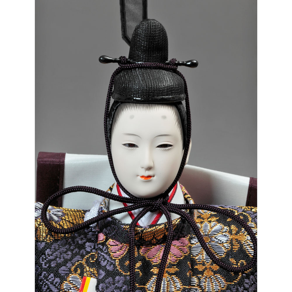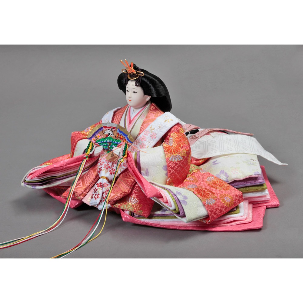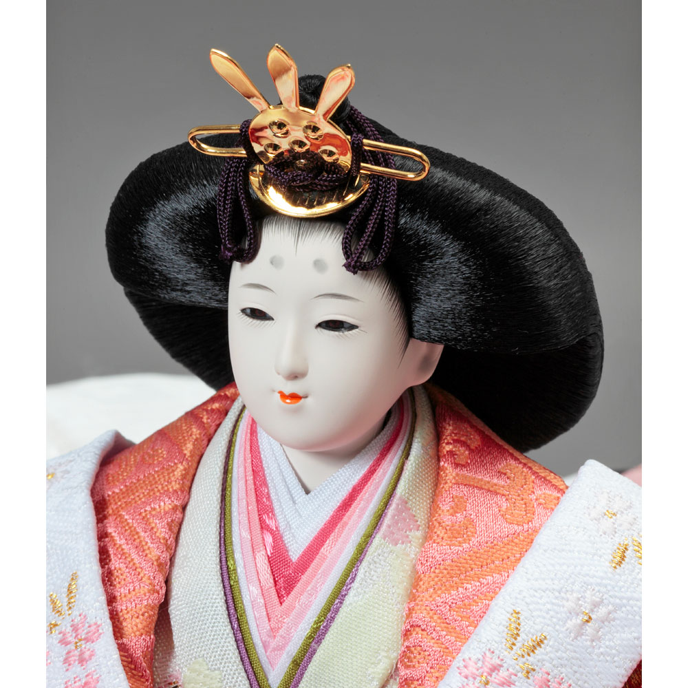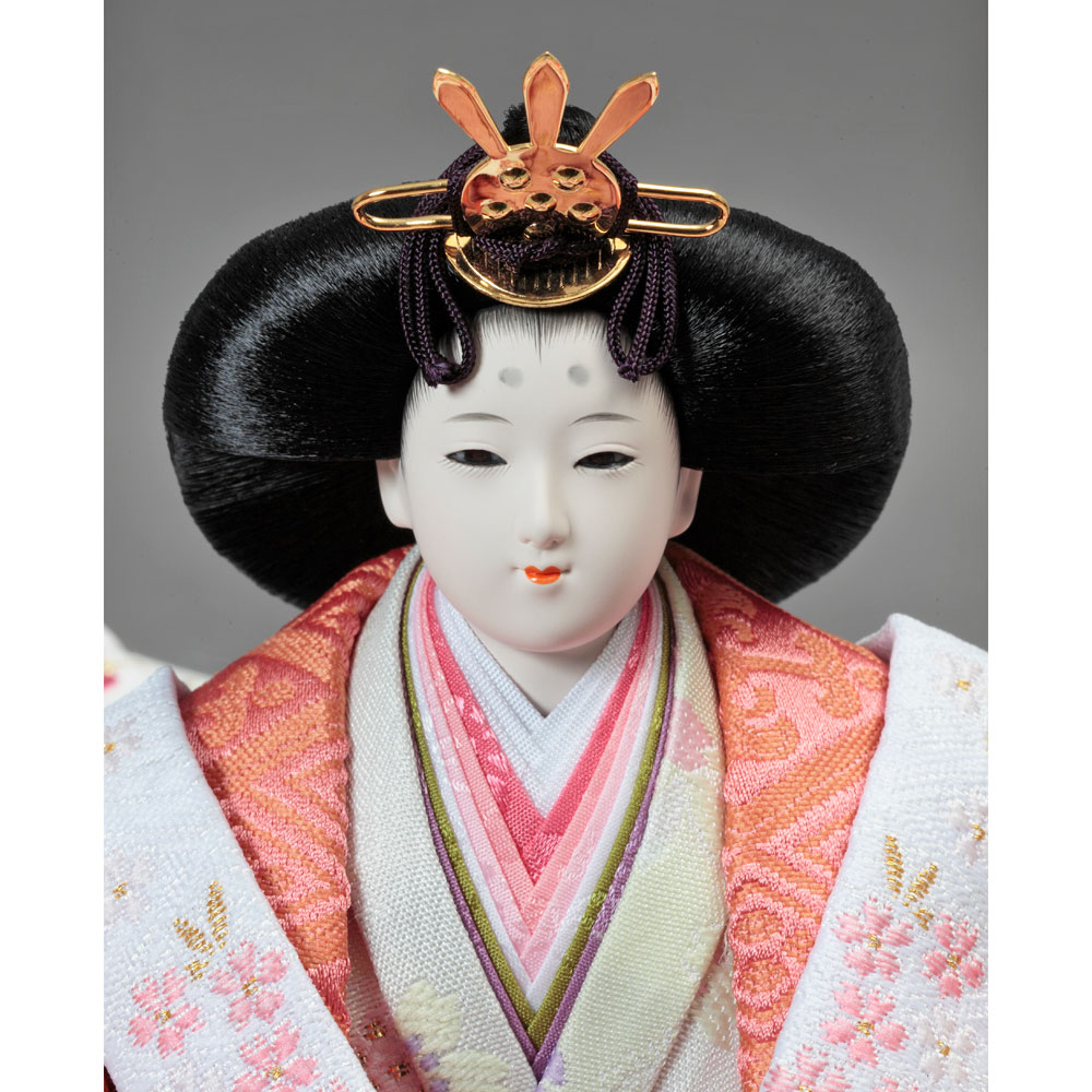 気品ある佇まいが魅力の男雛と女雛に、明るく優美な色彩の官女を合わせた、洗練された雅やかな美しさの中にも可愛らしさを感じさせる人気の逸品です。