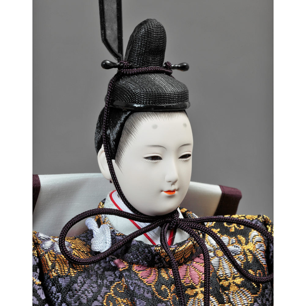 豪華な西陣織の衣裳を贅沢に使用して仕上げた、女の子の晴れの日のお祝いを優雅に彩る、飽きの来ない華やかな風情に魅せられるおひなさまです。