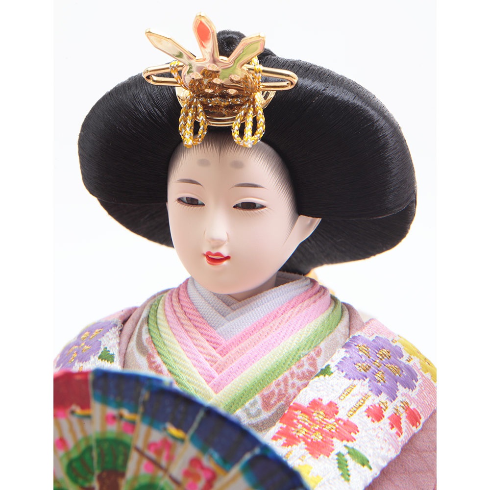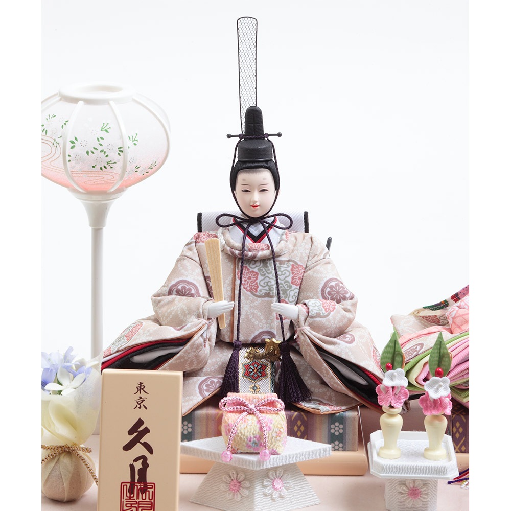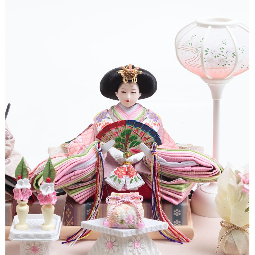 女の子の晴れの日のお祝いに優しく純真な彩りを添える、和室はもちろん洋間にも違和感無くマッチするケース入りの親王飾りです。