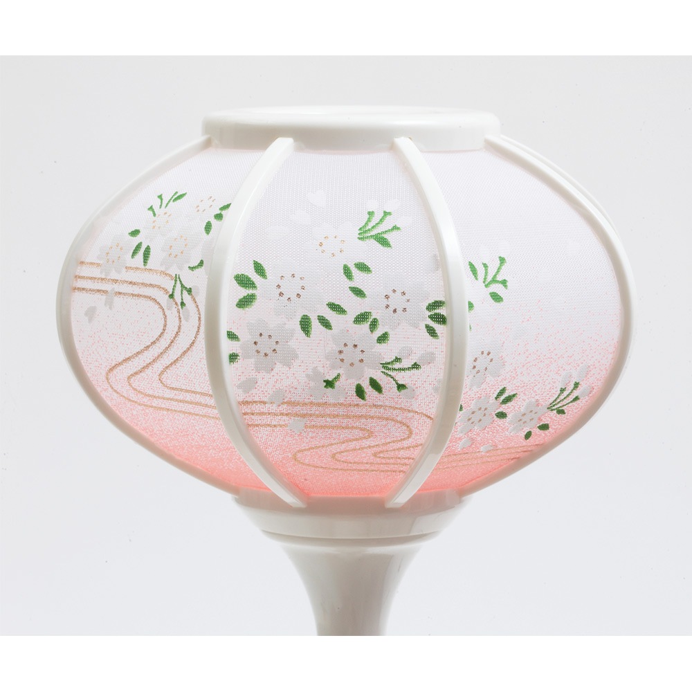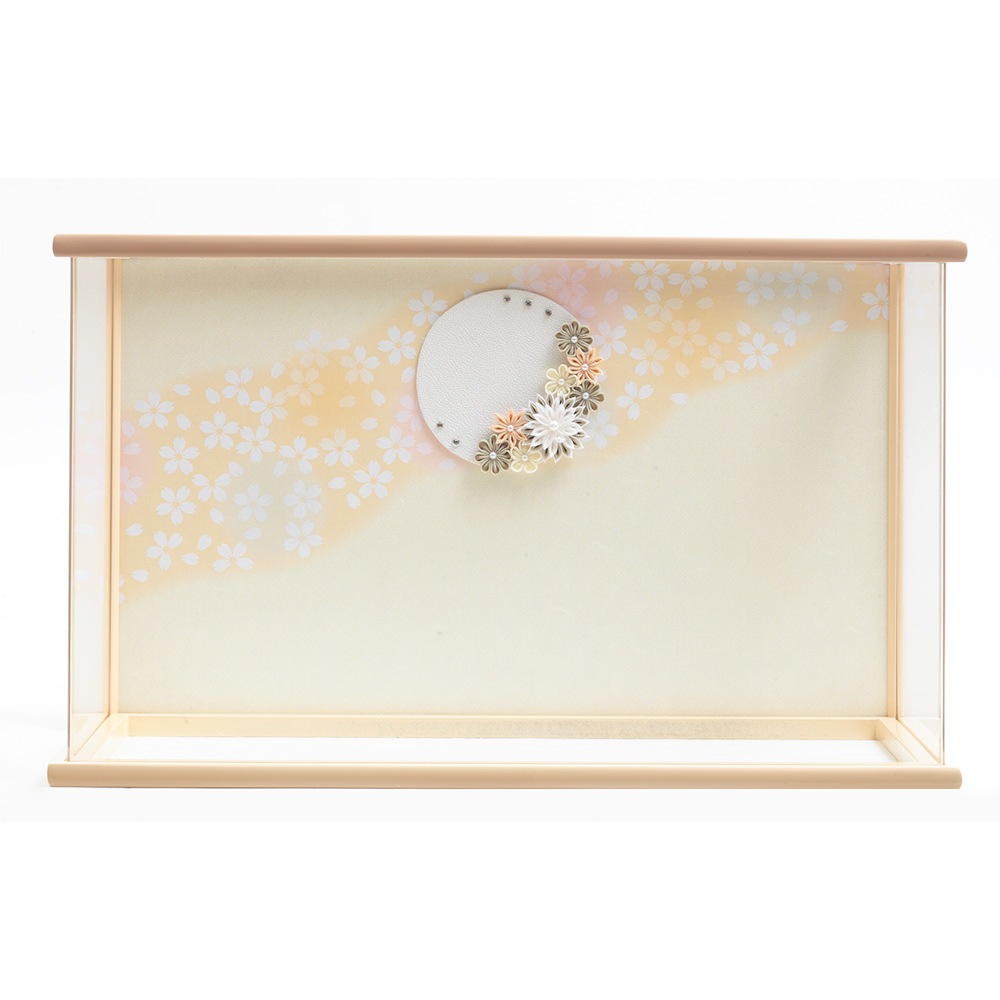 可憐な桜の絵柄をあしらった暖か味のある雰囲気が魅力のケース背景に、愛らしく微笑む色彩爽やかなお人形が見事に映えます。