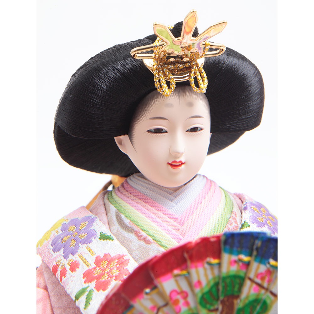 ケースの正面部からサイドにかけてアクリルを使用した、前柱を無くした開放的なデザインが特長の、お人形が美しく見える意匠を凝らした人気のおひなさまです。