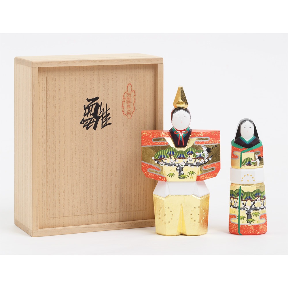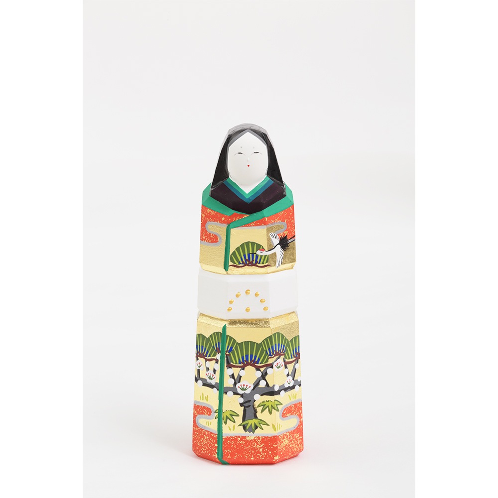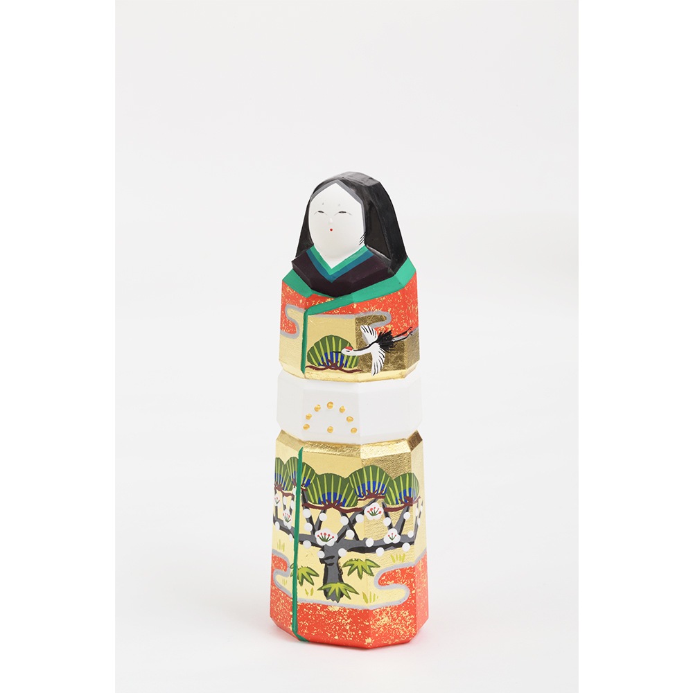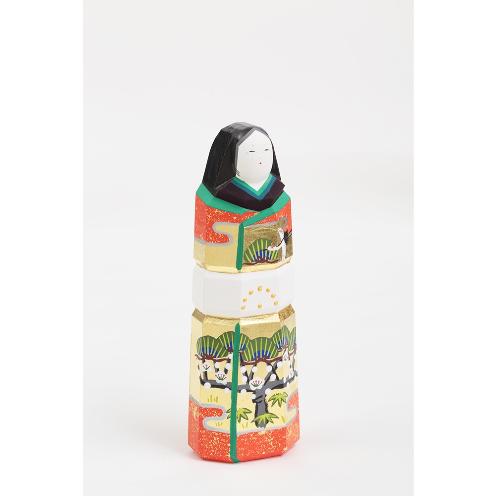 お人形にあしらわれている年中枯れることの無い松と成長の早さで知られる竹はどちらも生命力を象徴し、百の花に先駆けて咲くとされる梅は、早春に美しい花を咲かせることから開運の象徴とされ、大変縁起の良い吉祥のモチーフです。
