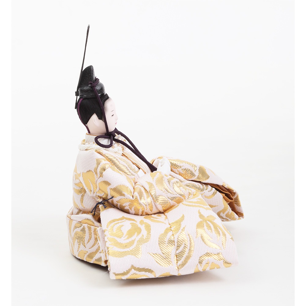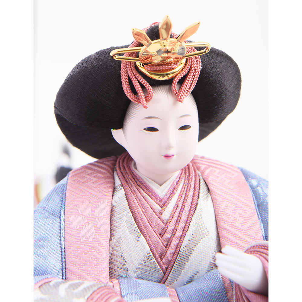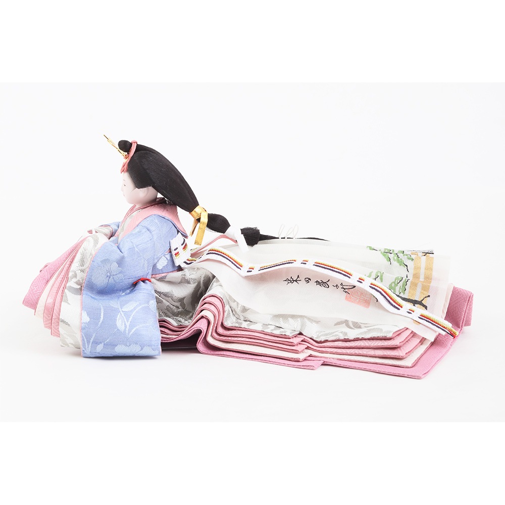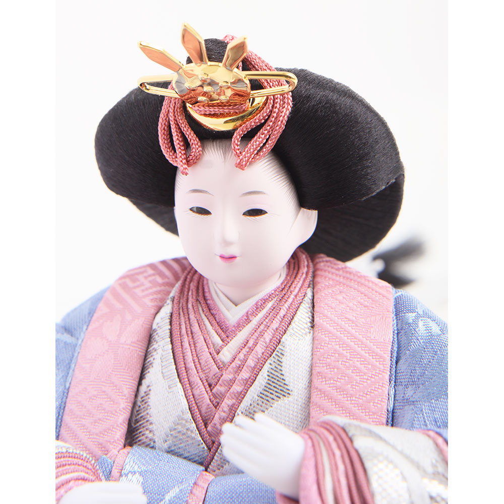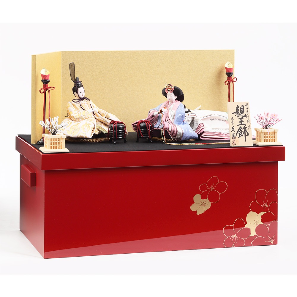 春の晴れの日のお祝いに明るく華麗な彩りを添える、可愛らしさの中にも伝統美を感じさせる収納タイプの親王飾りです。