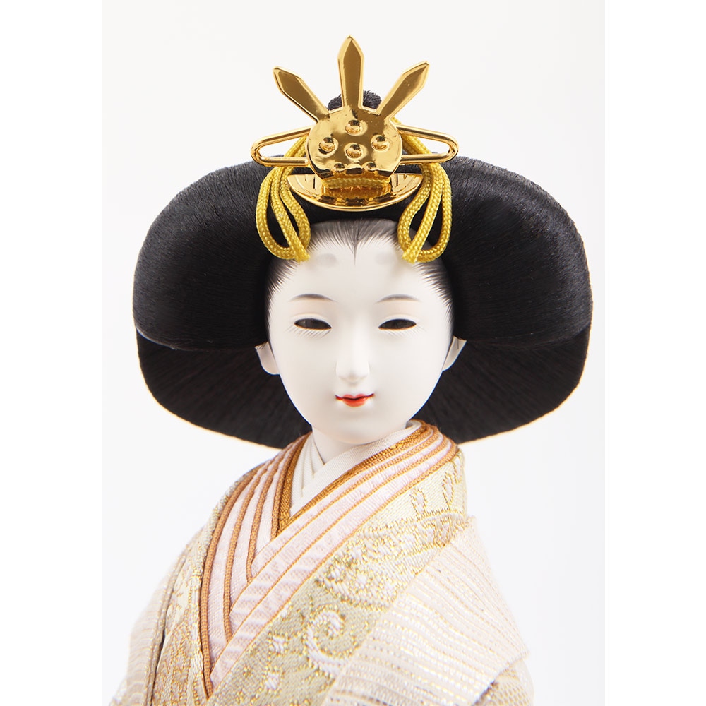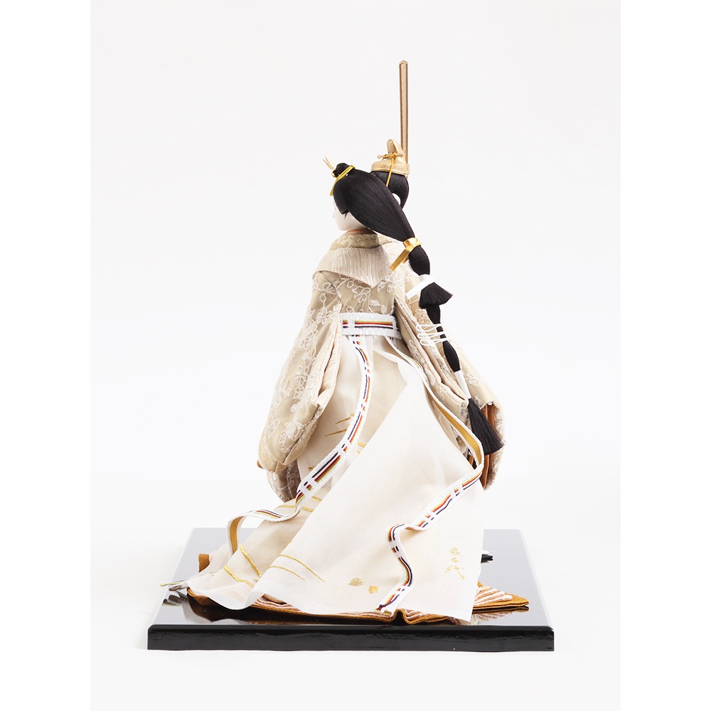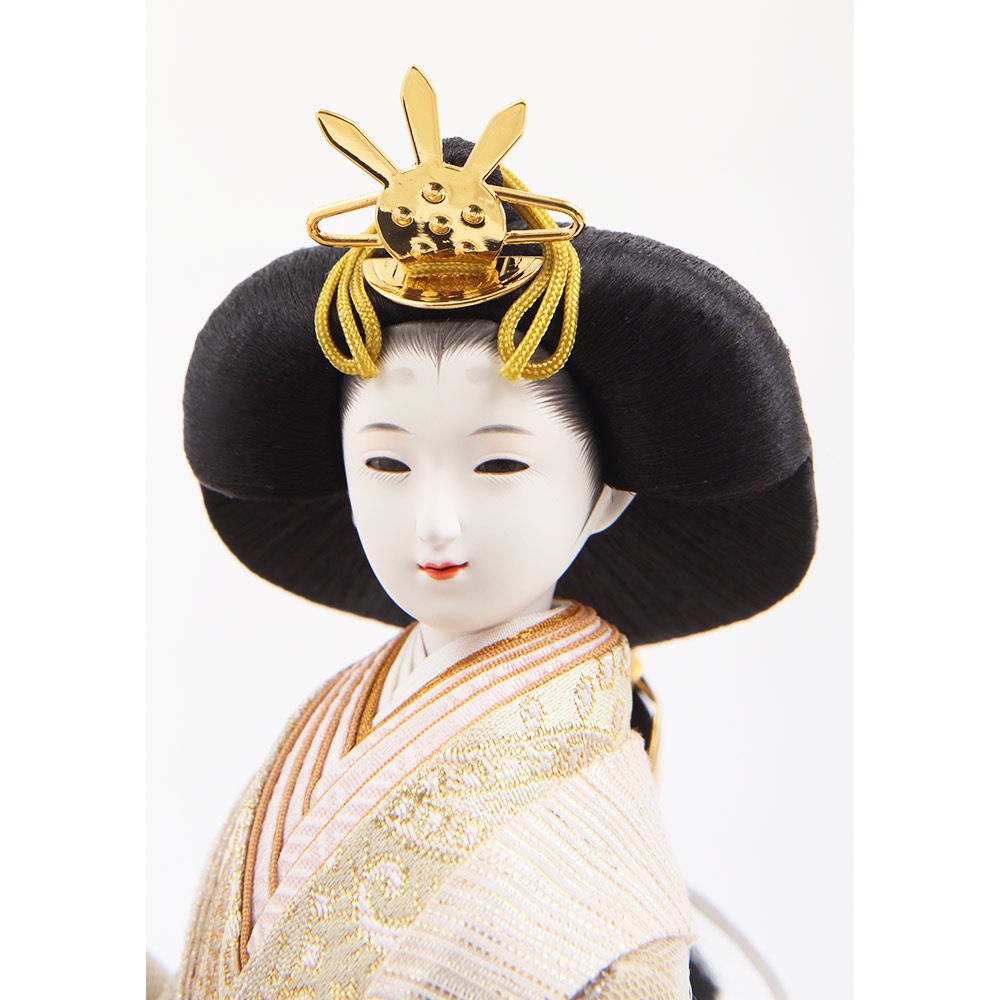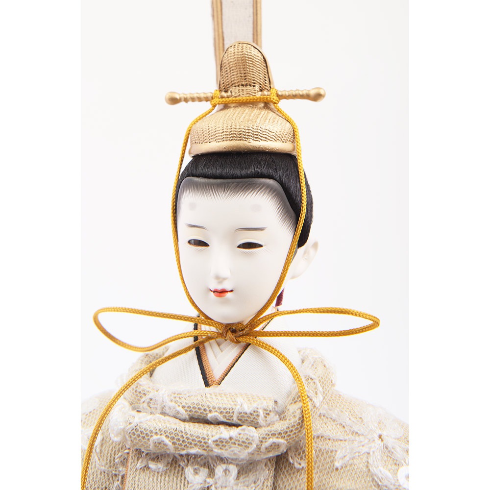 優し気に微笑む気品ある立ち姿の男雛に、暖か味のある優美な色襲(いろがさね)が素敵な女雛が、春の晴れの日のお祝いに飽きの来ない可憐な彩りを添えます。