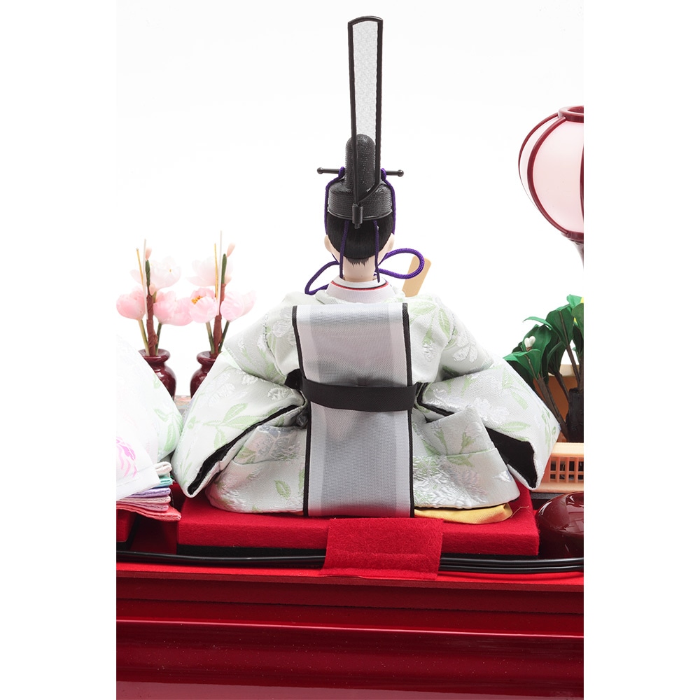 大切なお子様の初節句のお祝いに相応しい、縁起の良い流水桜のモチーフに魅せられる人気のケース入りの親王飾りです。