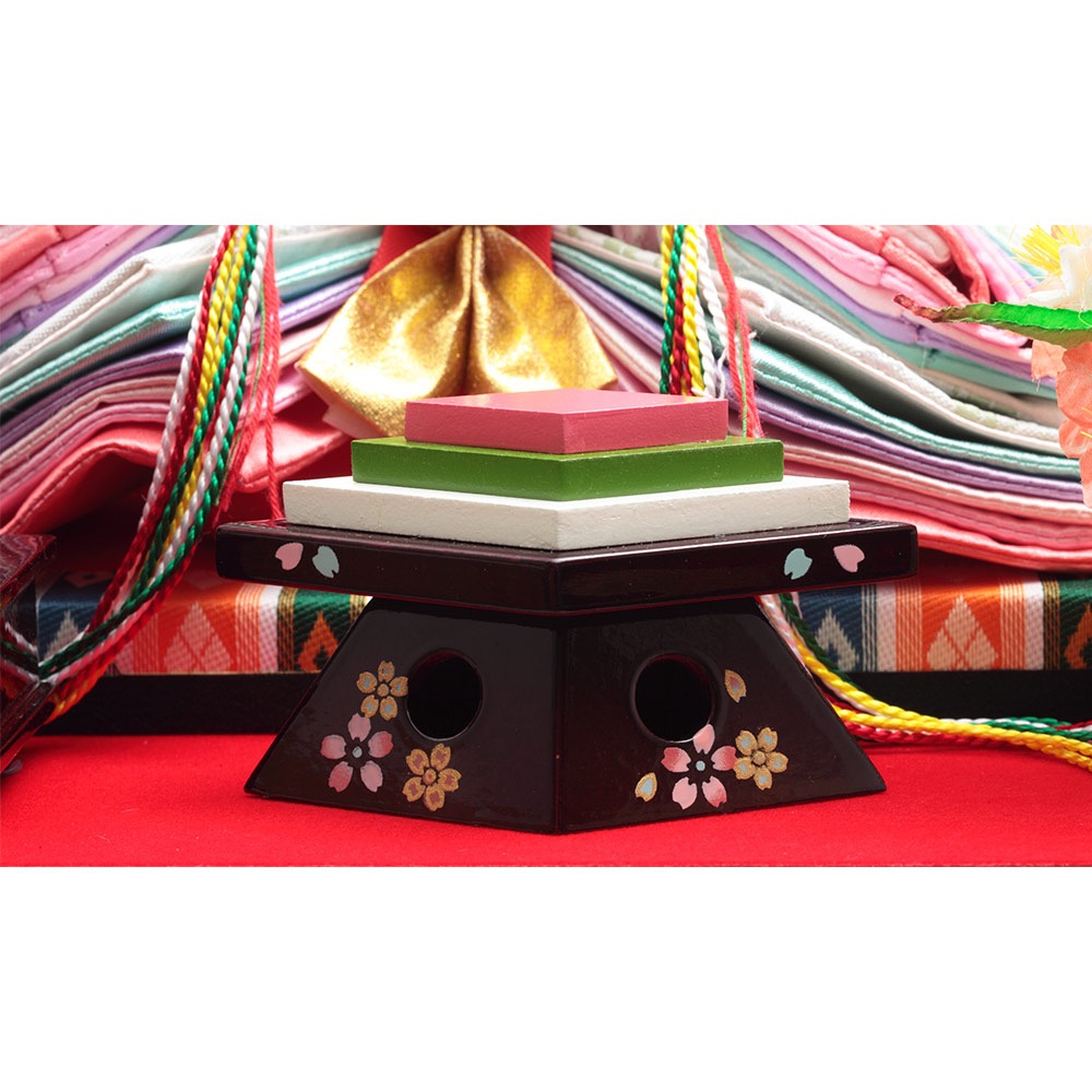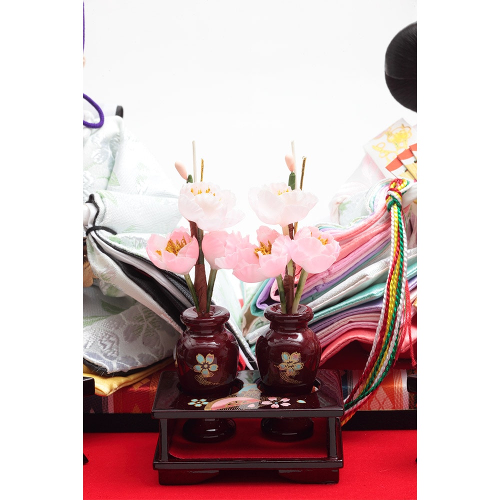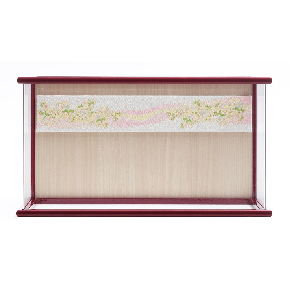 高級感のあるワインレッドの色合いが素敵なケースが、春の晴れの日のお祝いに洗練された優雅な彩りを添えるお飾りです。